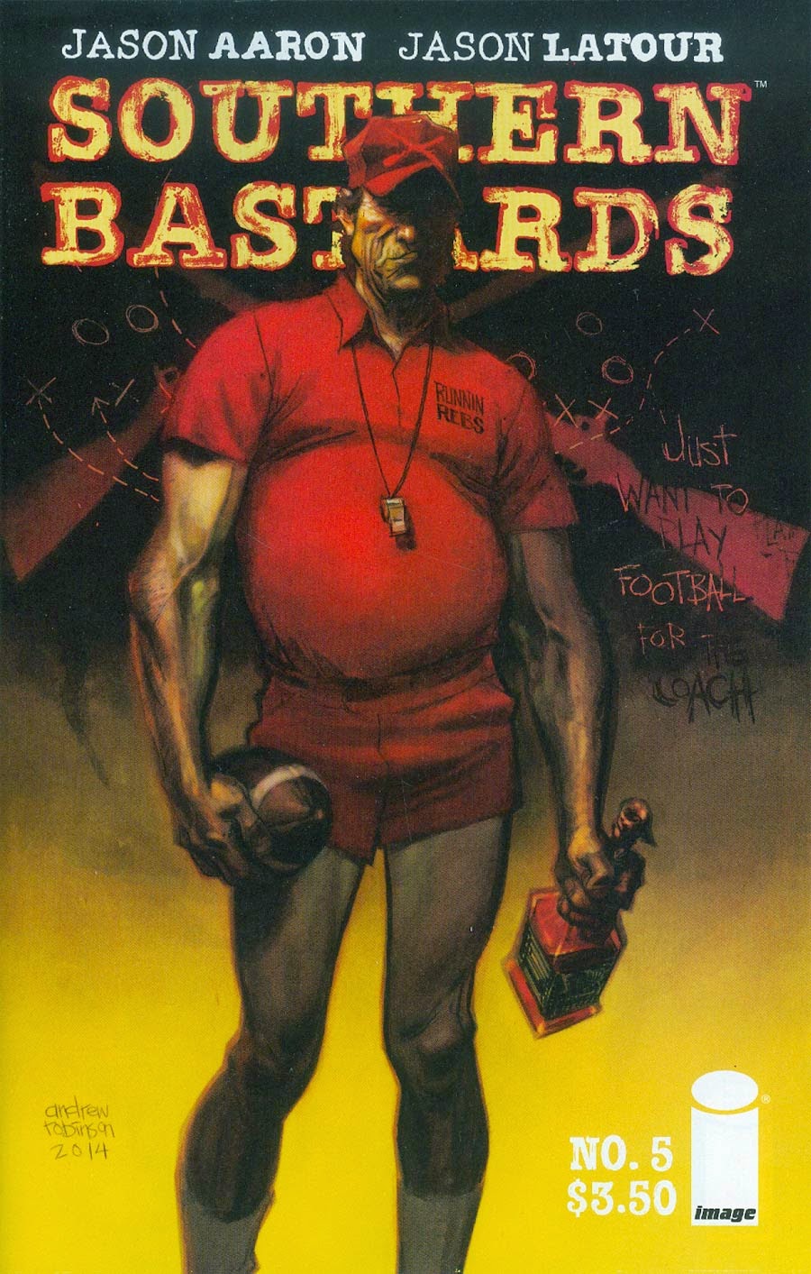Southern Bastards #5 (Image) – Well…I guess I’m out. Fuck. I’m pissed off. Just like Game of Thrones with Ned Stark, my gateway character – in the case of this series, Earl Tubb, the sympathetic protagonist of the “Here Was a Man” story arc (a telling title), the apparent star of this series’ first four issues, actually *** RARE SPOILERS *** diedin that fourth issue (okay, so “died” is a bit of an understatement, considering). Meaning he wasn’t even in this issue; hell even at his funeral it was a closed casket (y’know, given that hellacious beating he took in #4…). As of now, I’m undecided on getting #6. Maybe after the shock wears off, I’ll come around. But I don’t know. This dramatically changes the story for me – it’s less about one man and his awful plight and more about Craw County, its rival neighboring counties and all the bad denizens that live (and die) there. Minus one Earl Tubb, the whole reason I bought into the series. Damn you Jasons Aaron & Latour! Sigh. – Rating: 4.0